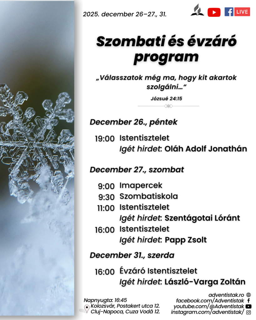Szombat 16 óra – Istentisztelet – LIVE
